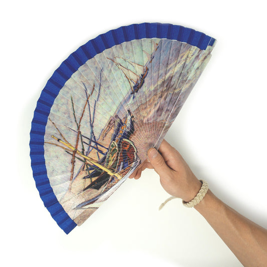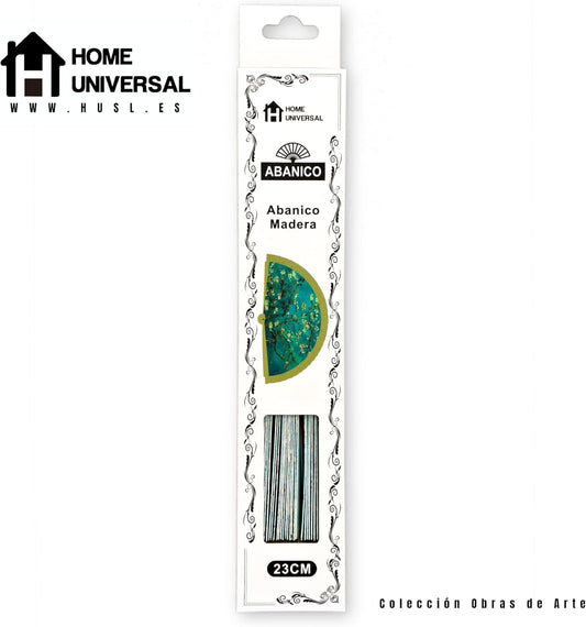 Home Universal ® Abanicos 23CM 1 pieza DE Madera Lisa con Tela DE Marfil, Abanico DE Madera Adornado, Abanico Original (Almendro en Flor (Van Gogh))
