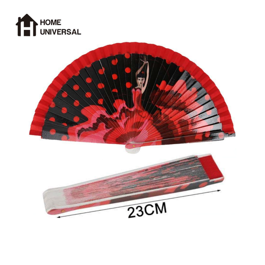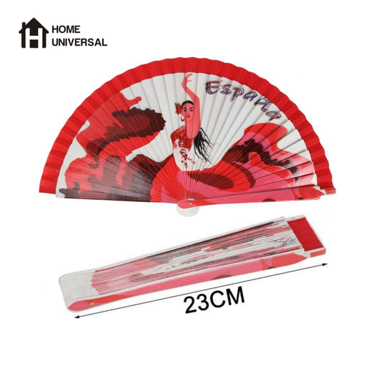 Home Universal ® Abanicos 23CM 1 pieza DE Madera Lisa con Tela DE Marfil, Abanico DE Madera Adornado, Abanico Original (Chica Flamenca)