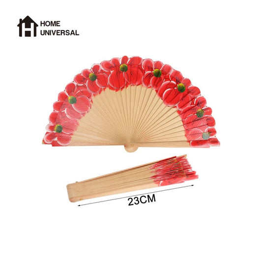 Home Universal ® Abanicos 23CM 1 pieza DE Madera Lisa con Tela DE Marfil, Abanico DE Madera Adornado, Abanico Original (Floral Rojo)