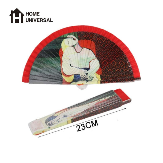 HOME UNIVERSAL Abanico de Madera con Tela de Marfil, Abanicos personales Estampados, Abanicos Colección Arte