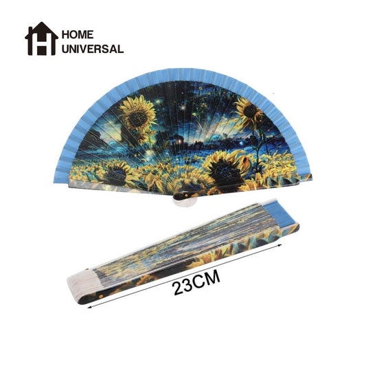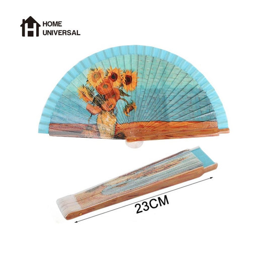 Home Universal ® Abanicos 23CM 1 pieza DE Madera Lisa con Tela DE Marfil, Abanico DE Madera Adornado, Abanico Original (Los Girasoles)