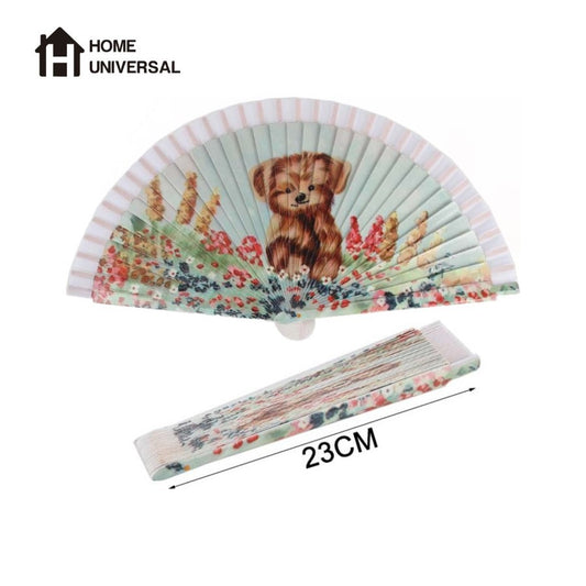 Home Universal ® Abanicos 23CM 1 pieza DE Madera Lisa con Tela DE Marfil, Abanico DE Madera Adornado, Abanico Original (Cachorrito)