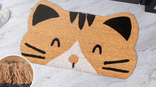 Home Universal ® Felpudos 60x40CM Fibra de Coco | Base Antideslizante de Caucho | Apto para el Exterior (Gatito)
