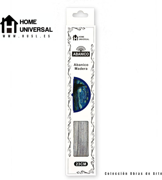 Home Universal ® Abanicos 23CM 1 pieza DE Madera Lisa con Tela DE Marfil, Abanico DE Madera Adornado, Abanico Original (Van Gogh)