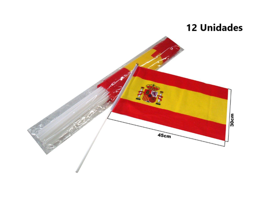 Home Universal ® Bandera de España, Tela Resistente al viento y la lluvia, Bandera de Mano de España, con Costuras Reforzadas, Perfecta para Coches, Escritorios y Fiestas (Banderas Pequeñas, 12 piezas)