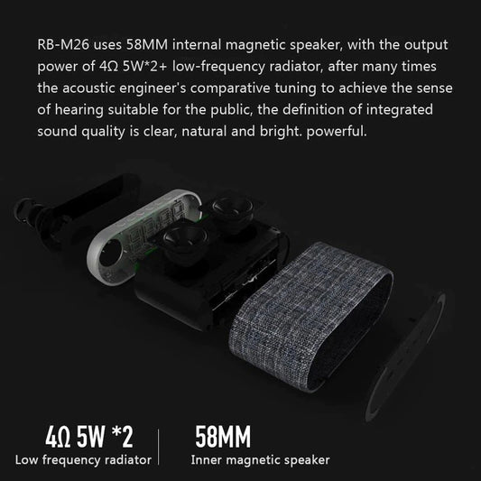 Altavoz Bluetooth RB-M26 Con Reloj Despertador y Radio FM, Altavoz Bluetooth Potente, Mano Libre, Puerto Para AUX/Tarjeta SD