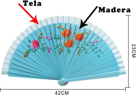 Home Universal® Pack12 Abanicos Madera Pintado por 1 Cara, Abanicos Artesanales Pintados a Mano, Abanicos Españoles (UNA_CARA_PACK12_Azul)