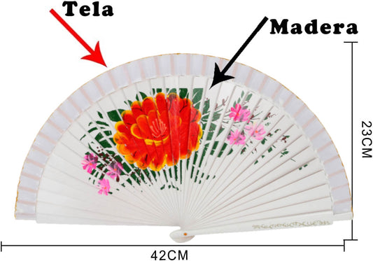 Home Universal® Pack12 Abanicos Madera Pintado por 1 Cara, Abanicos Artesanales Pintados a Mano, Abanicos Españoles (UNA_CARA_PACK12_Blanco)