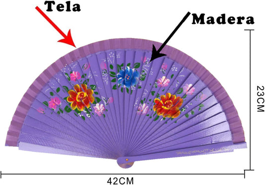 Home Universal® Pack12 Abanicos Madera Pintado por 1 Cara, Abanicos Artesanales Pintados a Mano, Abanicos Españoles (UNA_CARA_PACK12_ Violeta)