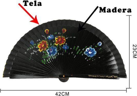 Home Universal® Pack12 Abanicos Madera Pintado por 1 Cara, Abanicos Artesanales Pintados a Mano, Abanicos Españoles (UNA_CARA_PACK12_ Negro)