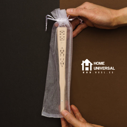 HUSL ABANICO MADERA 20 CM EN BOLSA DE ORGANZA A JUEGO, ABANICOS PARA EVENTOS, DETALLES PARA LOS INVITADOS, REGALOS DE BODA, FIESTAS, COMUNIÓN O BAUTIZO
