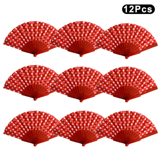 HUSL ABANICOS PLASTICO LUNARES FLAMENCO 23CM, ABANICOS PARA EVENTOS, DETALLES PARA LOS INVITADOS, REGALOS DE BODA, FIESTAS,POLKA