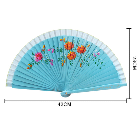 HUSL ABANICOS MADERA 23CM PINTADO UNA CARA, DETALLES PARA LOS INVITADOS, REGALOS DE BODA, FIESTAS, COMUNIÓN O BAUTIZO, ABANICO DE MADERA FLOWER