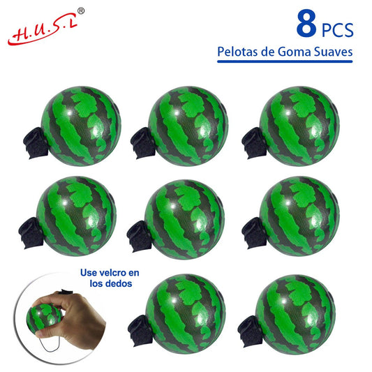 HUSL Bolas de Goma de Rebote con correa para el dedo y cuerda elástica, Bolas de deportes de goma suave, pelota para jugar en zona interior y aire libre, diseñado para los niños-Diámetro approx.6.3 cm(Sandía)