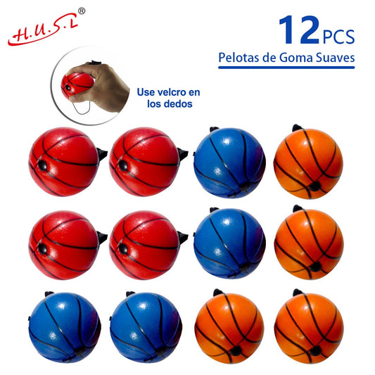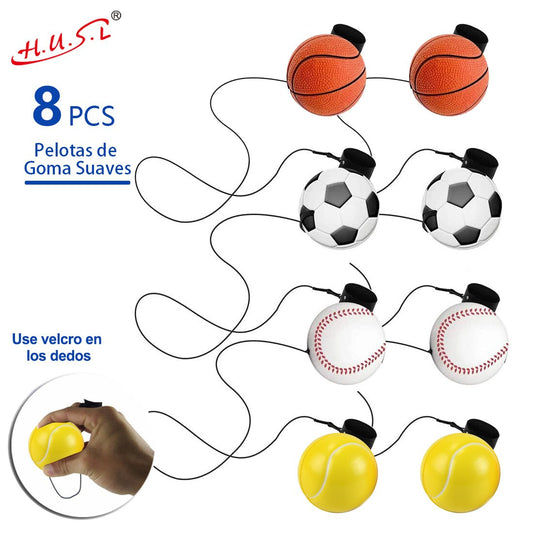 HUSL Bolas de Goma de Rebote con correa para el dedo y cuerda elástica, Bolas de deportes de goma suave, pelota para jugar en zona interior y aire libre, diseñado para los niños-Diámetro approx.6.3 cm(Baloncesto, futbol, voleibol, béisbol)