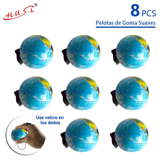 HUSL Bolas de Goma de Rebote con correa para el dedo y cuerda elástica, Bolas de deportes de goma suave, pelota para jugar en zona interior y aire libre, diseñado para los niños-Diámetro approx.6.3 cm(Globo terráqueo)