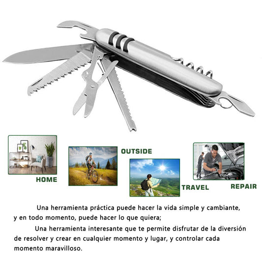 Navaja de Camping, Cuchillo Plegable 11 en 1 Cuchillo de Bolsillo de Acero Inoxidable Cuchillos de Caza con Bolsa de Tela, Navaja Plegable Portátil de Supervivencia para Acampar