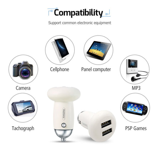 REMAX RCC 210 Cargador de Coche con 2 Puertos de USB 2.1A, Cargador USB Dual, DC12-24V, Cargador Mechero para Móvil y Tablet