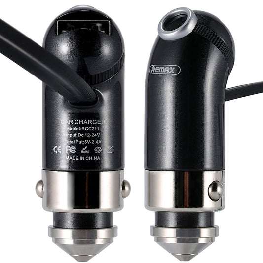 REMAX RCC 211 Cargador de Coche 3 en 1,DC12-24V, Cargador Mechero con Cable de Lightning y Adaptador de Tipo-C,5V-2.4A