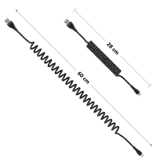 REMAX RC-139 Cable Espiral USB Corto y Flexible 2.1A de iPhone/Tipo C/Micro USB, Cable para Cargar Teléfono Móvil o Pasar Datos, 28-60cm