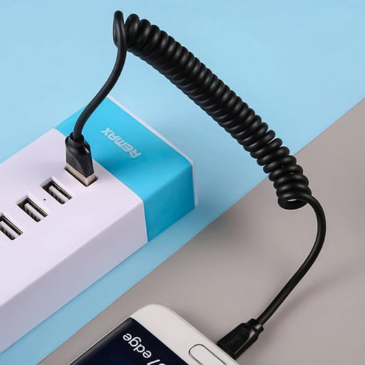 REMAX RC-117m Cable Espiral USB Corto y Flexible 2.4A de Micro USB, Cable para Carga de Teléfono Móvil o Pasar Datos, 24-40cm