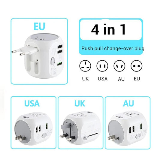REMAX RL-EP08 Adaptador de Enchufe Universal de US/EU/UK/AU Macho y Hembra, con Un USB de QC3.0 y 2 USB de 2.4A,Adaptador Enchufe para Viaje