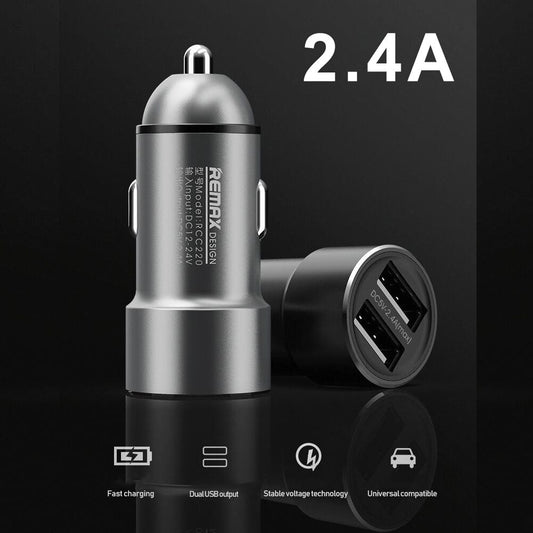REMAX RCC-220 Cargador de Coche con 2 Puertos de USB 2.4A, Cargador USB Dual, DC12-24V, Cargador Mechero para Móvil y Tablet