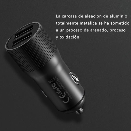 REMAX RCC 221 Cargador de Coche con 2 Puertos de USB,QC3.0+2.4A,Cargador Coche Carga Rápida, Cargador Mechero para Móvil y Tablet