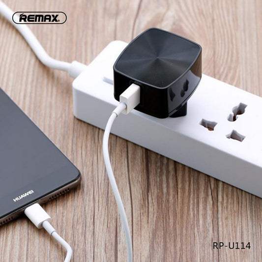 REMAX RP-U114 Cargador Móvil Carga Rápida de 3A con 1 Puertos de USB, Compatible con Apple o Android, Negro / Blanco