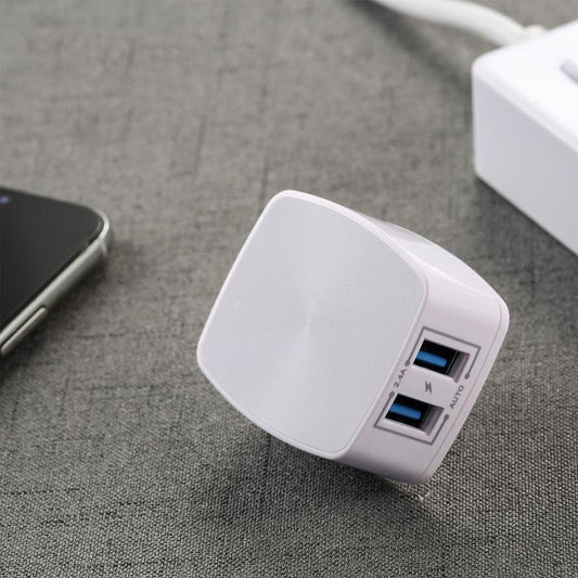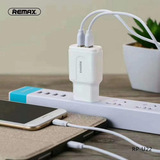 REMAX RP-U22 Cargador de Móvil con 2 Puertos de USB, Compatible con Apple o Android, 2.4A(MAX), No Cable-Color Blanco