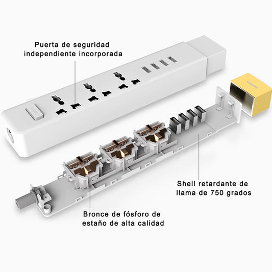 REMAX RU-S2 Regleta Enchufe Múltiples para Electricidad y USB, Ladrón Enchufe Europeo con 3 Tomas y 4 USB, Enchufe con Interruptor