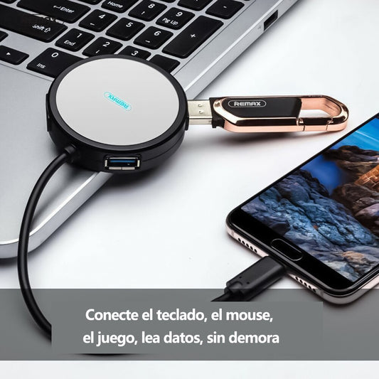 REMAX RU-U20 USB Tipo-C de 4 Puertos de USB con Espejo y Luz LED Multicolor, Divisor USB de Alta Velocidad para Móvil de Tipo-C, Portátil, MacBook Conectar con Disco Duro Externo, Pen Drive, Ratón, Teclado, Móvil, Cámaras