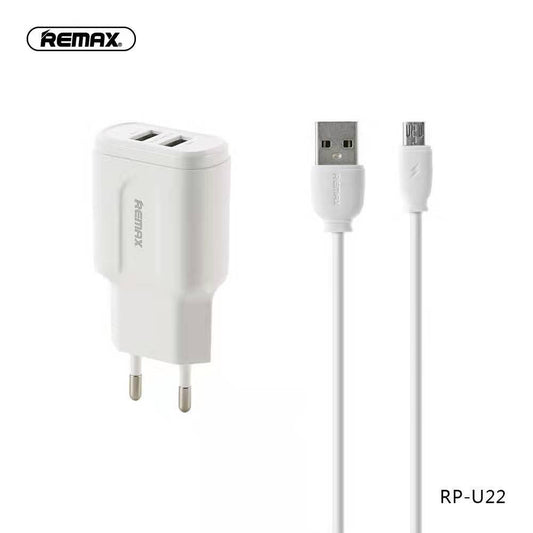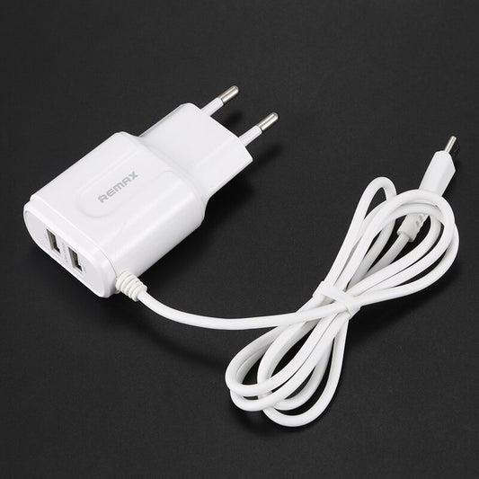 REMAX RP-U22 Cargador de Móvil con 2 Puertos de USB, con Un Cable de Micro USB de 100cm Incluido, 2.4A(MAX)
