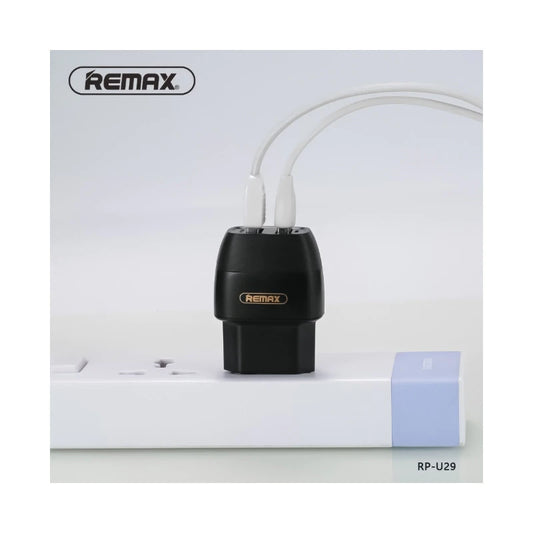 REMAX RP-U22 PRO Cargador de Móvil de Micro USB con 2 Puertos de USB Adicionales, con el Cable de Micro USB Integrado de 1m, 2.4A(MAX)