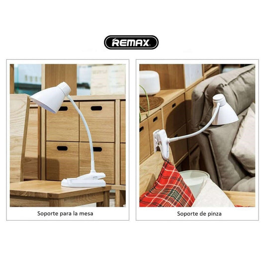 REMAX RT-E500 Lámpara LED Con Pinza, Con Soporte Para La mesa, Recargable Por USB, Con Protección Ocular, Brillo Ajustable, Flexible