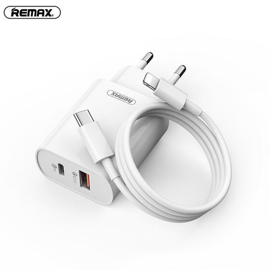 REMAX RP-U37 Cargador de Carga Ultra Rápida con Puerto Tipo-C de 18w +USB 3A,con Un Cable de Tipo-C a iPhone de 18W Incluido