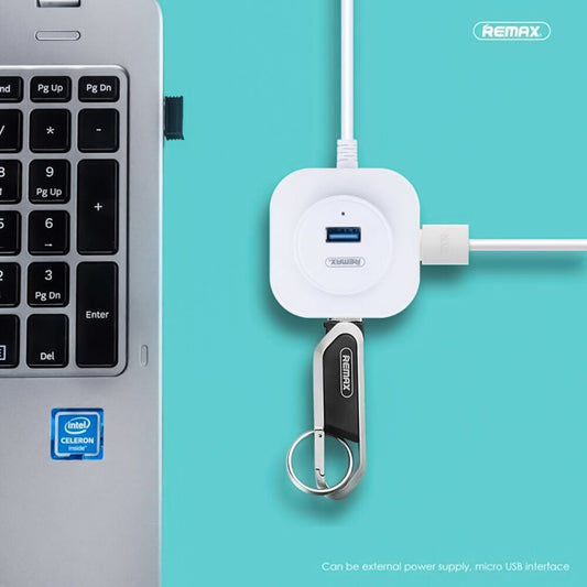 REMAX RU-U8 Hub USB 3.0 de 4 Puertos, Divisor USB de Alta Velocidad para Conectar con Disco Duro Externo, Pen Drive, Ratón, Teclado, Móvil, Cámaras