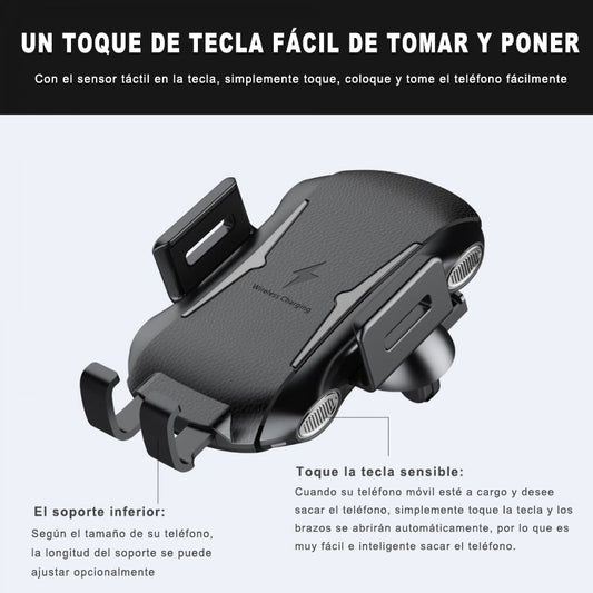 Soporte Automático de Móvil con Carga Inalámbrica Qi 10W para Coche, con Pinza para La Salida Del Aire Acondicionado