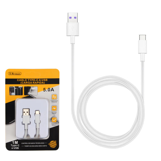 T.REMAX 5A Cable USB-C de Carga Ultra Rápida y Datos Cargador Rápido 1 Metro Tipo C para Huawei P40 Pro/P30/P20/Mate 30/20Xiaomi