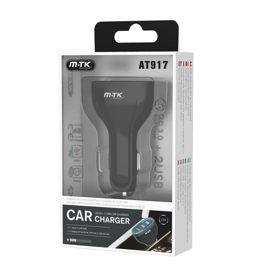 Cargador de Coche con 3 Puertos de USB,QC3.0+2 USB, Cargador Coche de Carga Rápida, Cargador Mechero para Móvil y Tablet