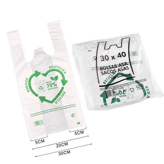 Bolsas De Plástico Tipo Camiseta, Reutilizables y 70% Recicladas, Gran Resistencia, Cumple Normativas, Aptas Uso Alimentario