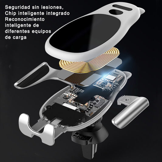 Cargador inalámbrico coche, soporte de carga rápida 15W cargador inalámbrico de inducción automática por infrarrojos para coche