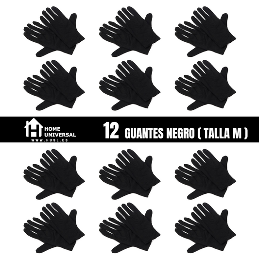 Home Universal® Guantes de Algodón 100% Blancos y Negros – Guantes Suaves y Transpirables para Hogar, Archivo, Joyería y Manipulación Delicada (Negro)