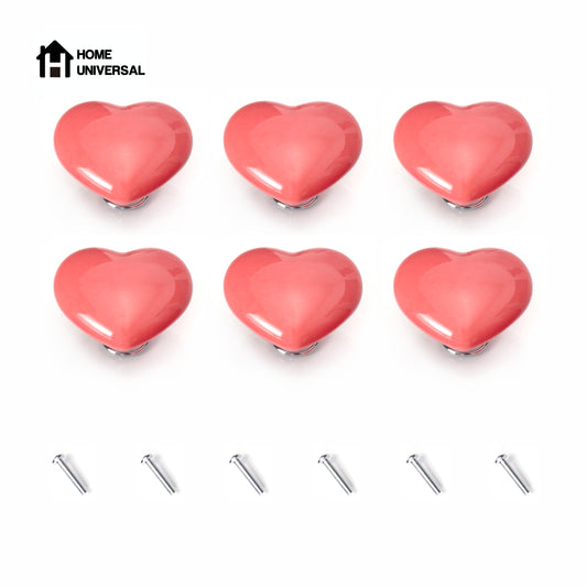 HOME UNIVERSAL | 6 Tiradores Muebles Infantiles de Cerámica | Pomos y Tiradores para habitación de niños niñas bebés | Tuerca y Tornillo incluido | (CORAZÓN)
