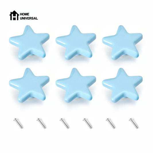 HOME UNIVERSAL | 6 Tiradores Muebles Infantiles de Cerámica | Pomos y Tiradores para habitación de niños niñas bebés | Tuerca y Tornillo incluido | (ESTRELLA_AZUL)