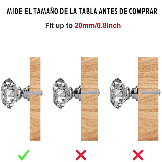 Pomos de Cristal para cajón o mueble, Tirador de Cajón con Tornillo, Mango de Cristal de Diamante, Tiradores de Muebles, para Armario Cajón Aparador Cocina, 30 mm