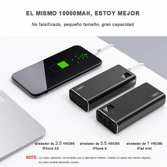 Batería Externa REMAX RPP-135 10000mAh 3 USB Entrada y Dual salida 5V 2A y LCD, Rápido Cargador Portátil Power Bank para Móviles