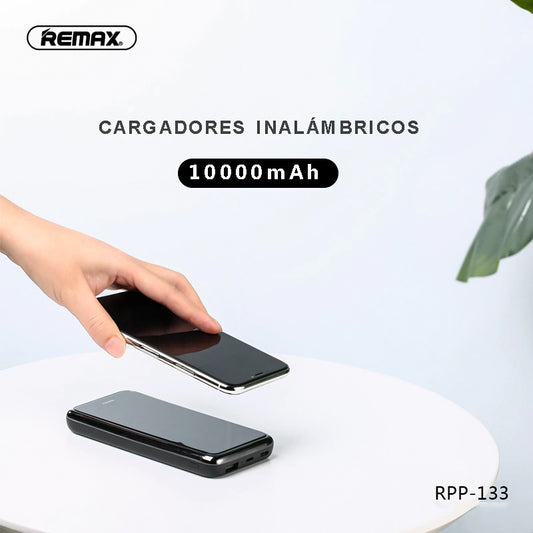 Batería Externa REMAX RPP-133 ,con Carga Inalámbrica, Cargador Portátil de 10000mAh, para iPhone, Samsung, Xiaomi, etc.