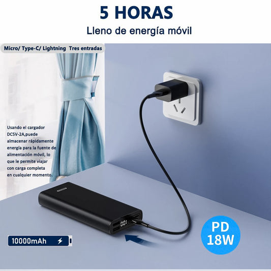PowerBank PD-P19, Batería Externa 20000mAh Cargador Móvil Portátil Banco de Energía, Carga Rápida para Xiaomi Mi, iPhone, Samsung