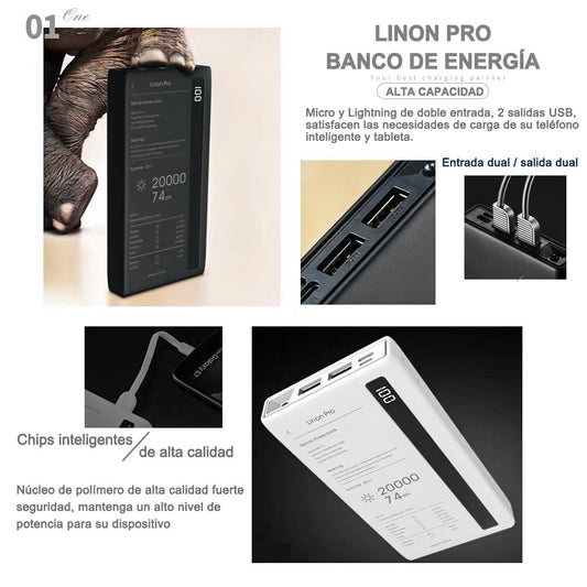 Batería Externa RPP73, 20000mAh Cargador Portátil con Alta Capacidad USB 2.0A,LED Linterna y Pantalla digital de la batería